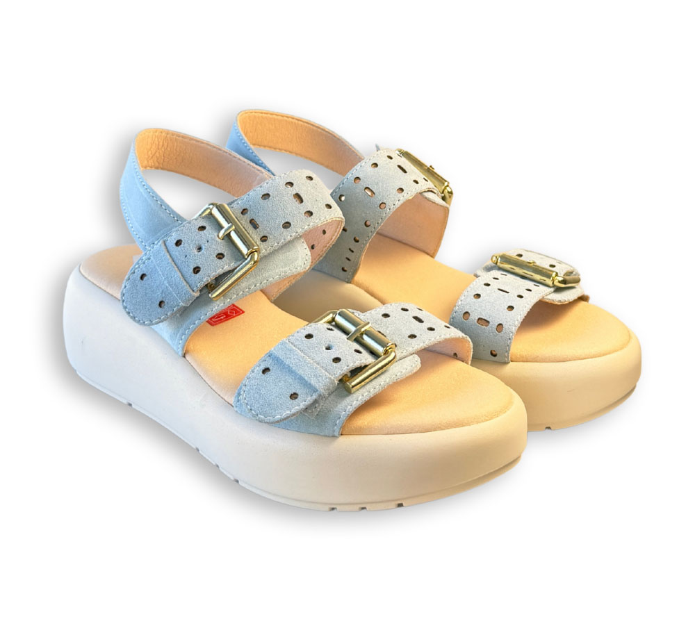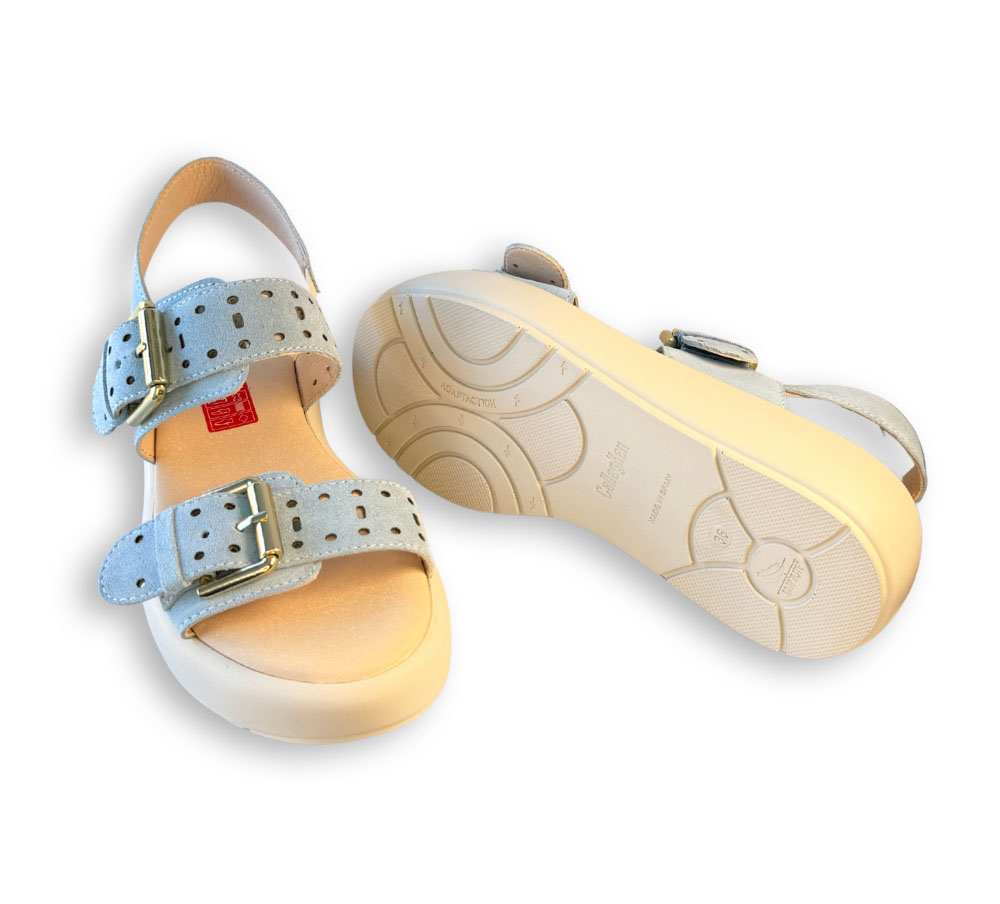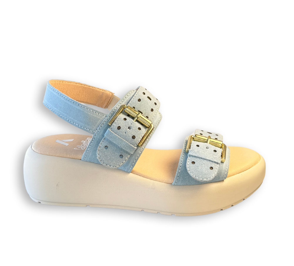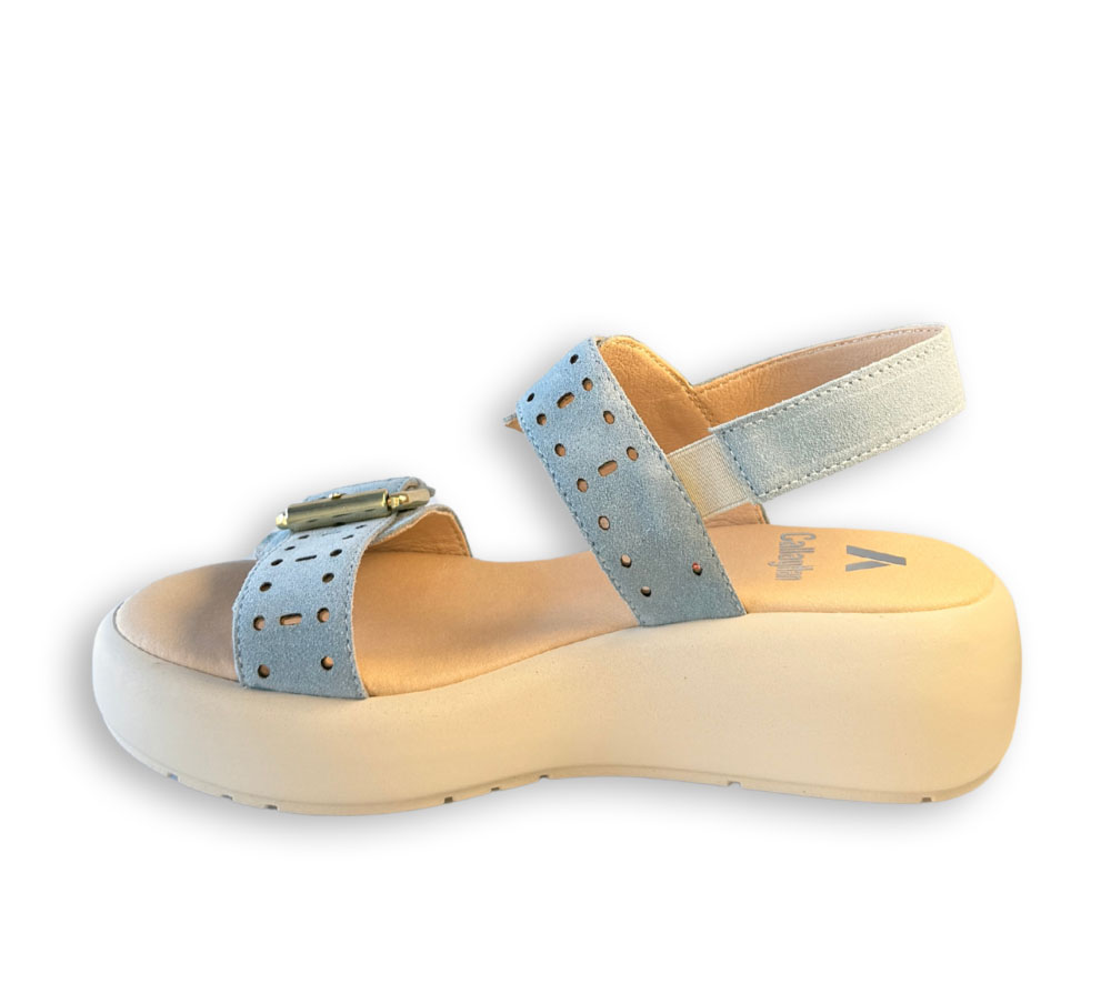 Sandalia Callaghan modelo Pesca en color azul, con diseño de tiras anchas y detalle de hebillas que aportan carácter. Su estructura con plataforma le da un aire moderno y fácil de combinar en el día a día.