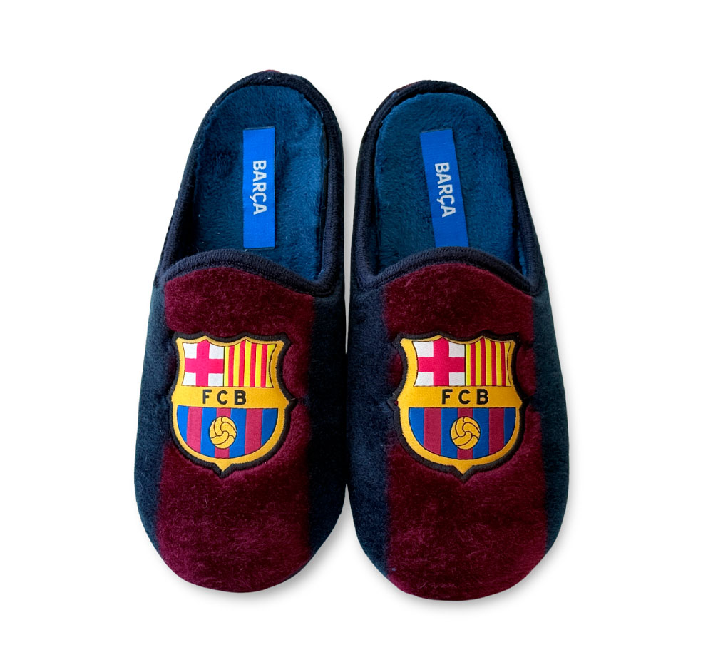 Las zapatillas de casa Marpen Slippers unisex modelo FC Barcelona en formato abierto son el complemento ideal para los auténticos seguidores azulgranas. Confeccionadas en tejido suave y aterciopelado, destacan por su diseño con los colores oficiales y el escudo del Barça en la parte superior, transmitiendo pasión por el club. Su interior mullido aporta calidez y confort, mientras que la suela de goma antideslizante garantiza seguridad y durabilidad en cada paso. Un calzado práctico y cómodo, perfecto para disfrutar del descanso en casa sin perder el espíritu culé.