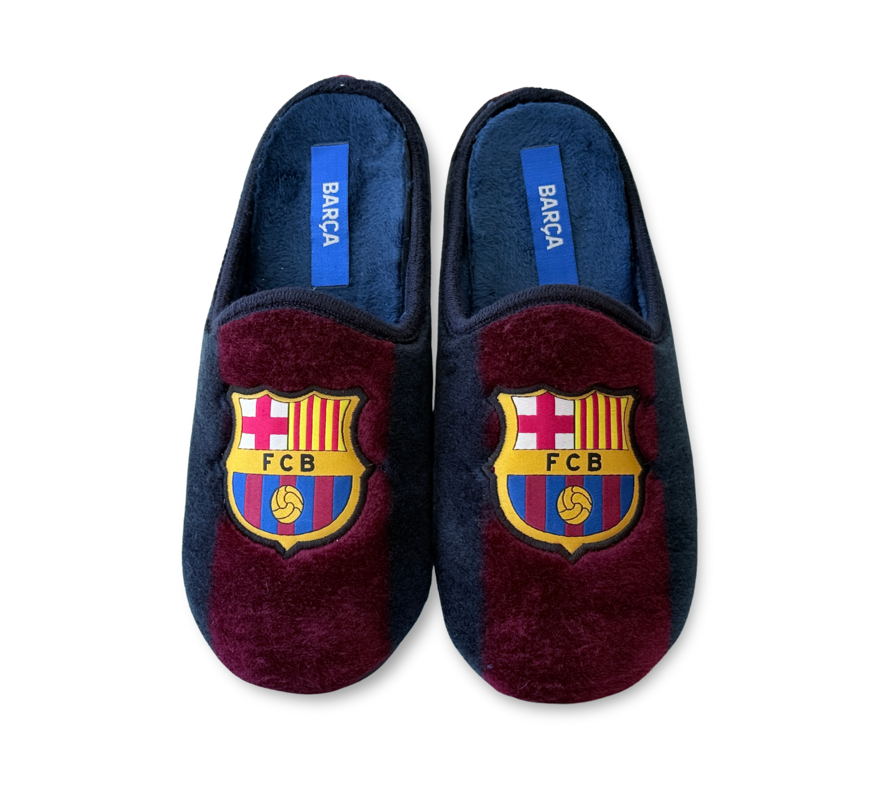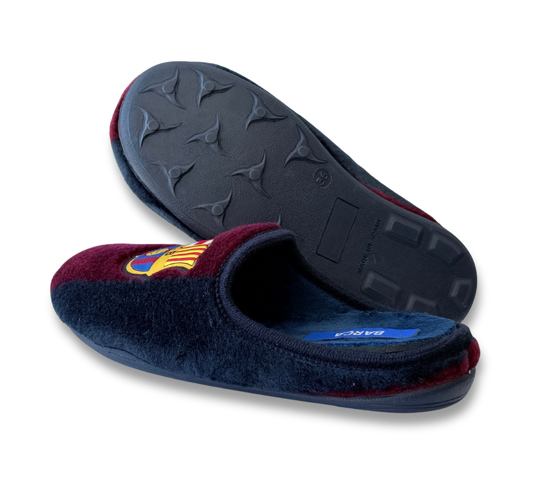 Las zapatillas de casa Marpen Slippers unisex modelo FC Barcelona en formato abierto son el complemento ideal para los auténticos seguidores azulgranas. Confeccionadas en tejido suave y aterciopelado, destacan por su diseño con los colores oficiales y el escudo del Barça en la parte superior, transmitiendo pasión por el club. Su interior mullido aporta calidez y confort, mientras que la suela de goma antideslizante garantiza seguridad y durabilidad en cada paso. Un calzado práctico y cómodo, perfecto para disfrutar del descanso en casa sin perder el espíritu culé.