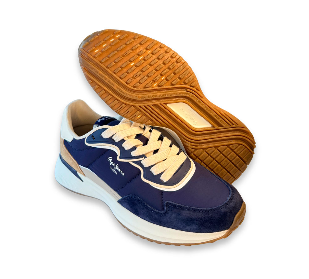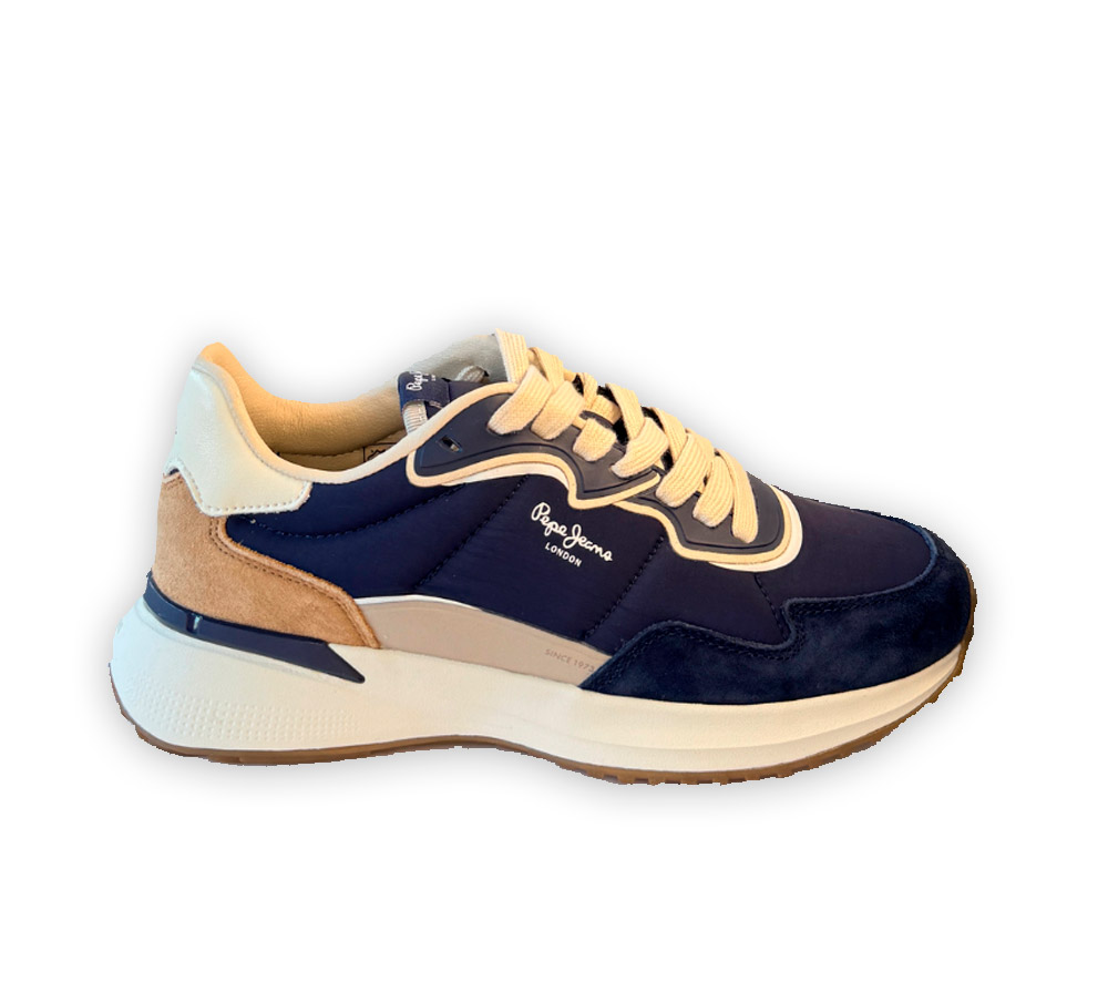Deportivo Pepe Jeans para hombre modelo Bampton Club M en color azul marino. Un diseño moderno y cómodo, perfecto para el día a día gracias a su combinación de materiales y su estilo urbano.