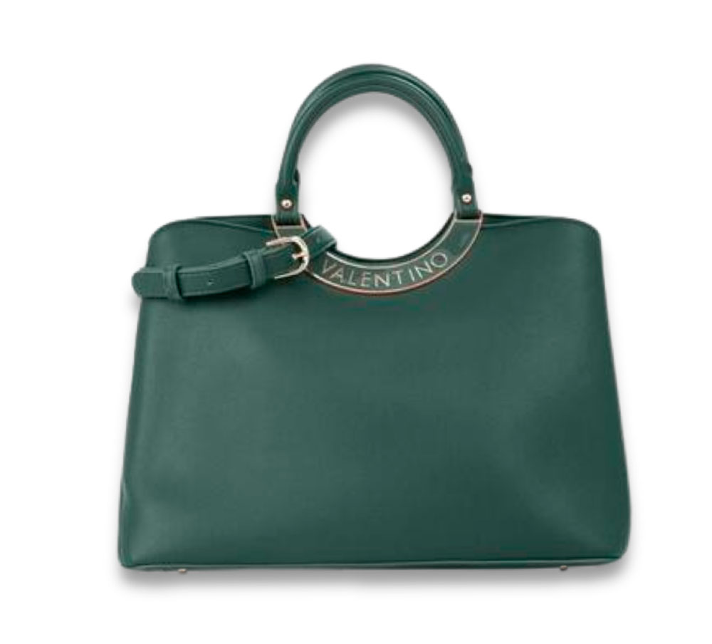 El bolso Valentino Wendy VBS9DW04 combina elegancia y funcionalidad en un diseño moderno. Está confeccionado con piel ecológica (poliuretano) en color verde, y sus dimensiones (≈ 32 cm × 25 cm × 13-14 cm) lo hacen espacioso sin ser voluminoso. Ofrece cierre con cremallera, tres compartimentos internos (uno con cremallera y dos con cierre magnético), asas de mano más correa ajustable/desmontable para llevar al hombro o cruzado, y pies metálicos para proteger la base. Ideal para quienes buscan un bolso versátil que complemente cualquier look.