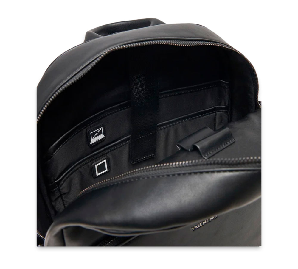 Mochila Valentino Bags Horizon VBS8UT02 (40 × 30 × 10,5 cm) en color negro, práctica y elegante, fabricada en ecopiel de calidad con detalles metálicos. Ideal para el día a día con estilo.